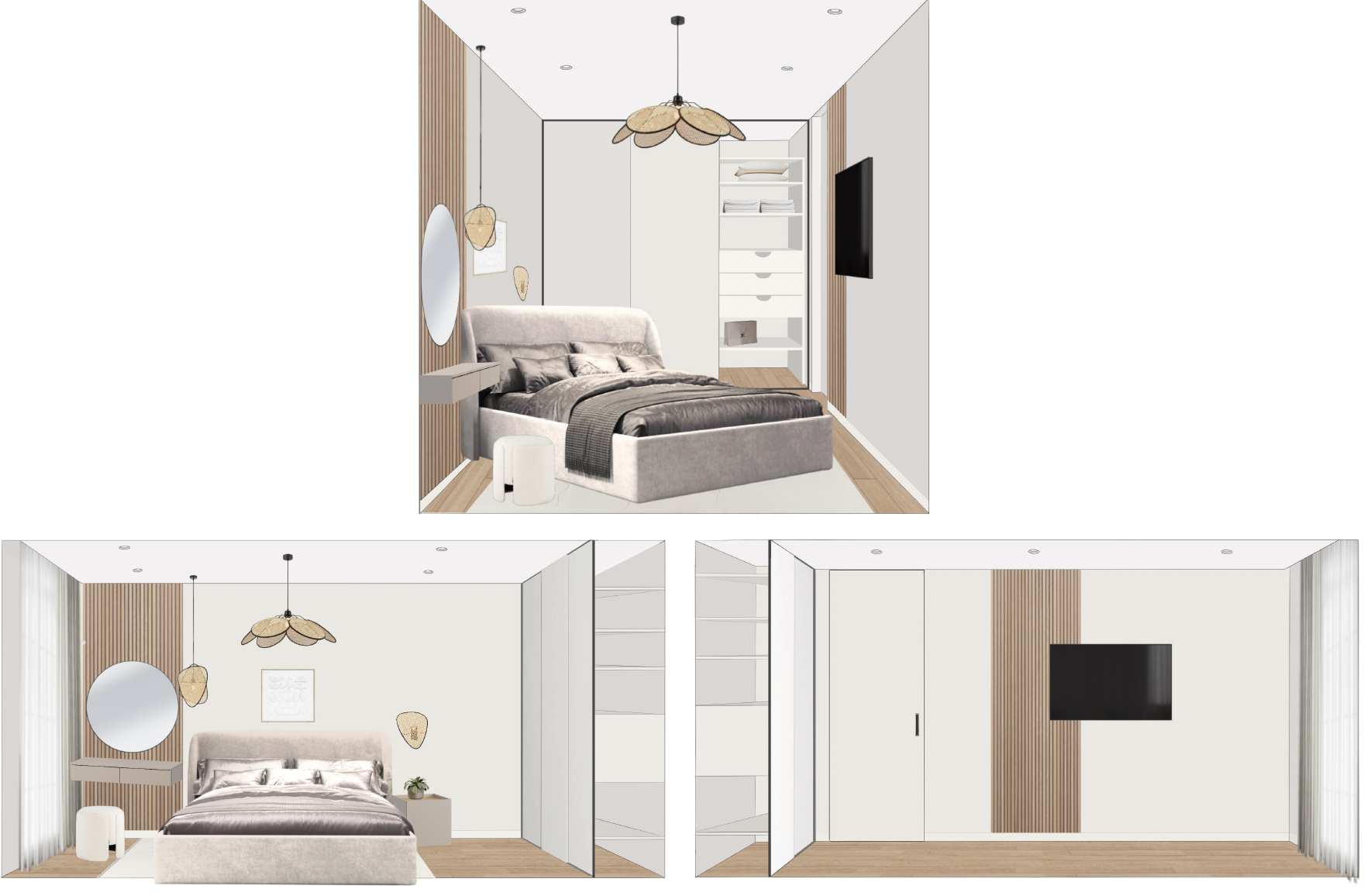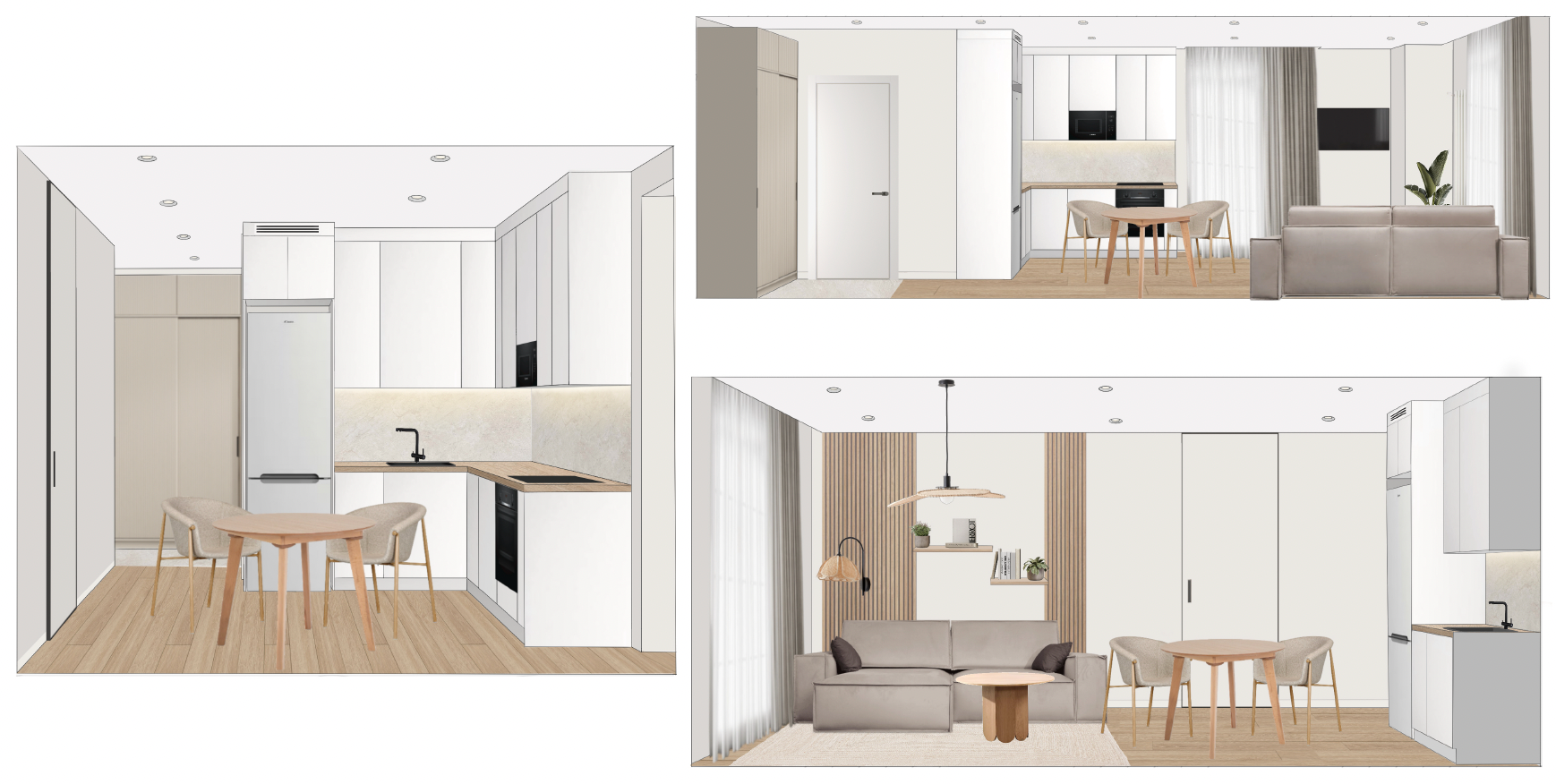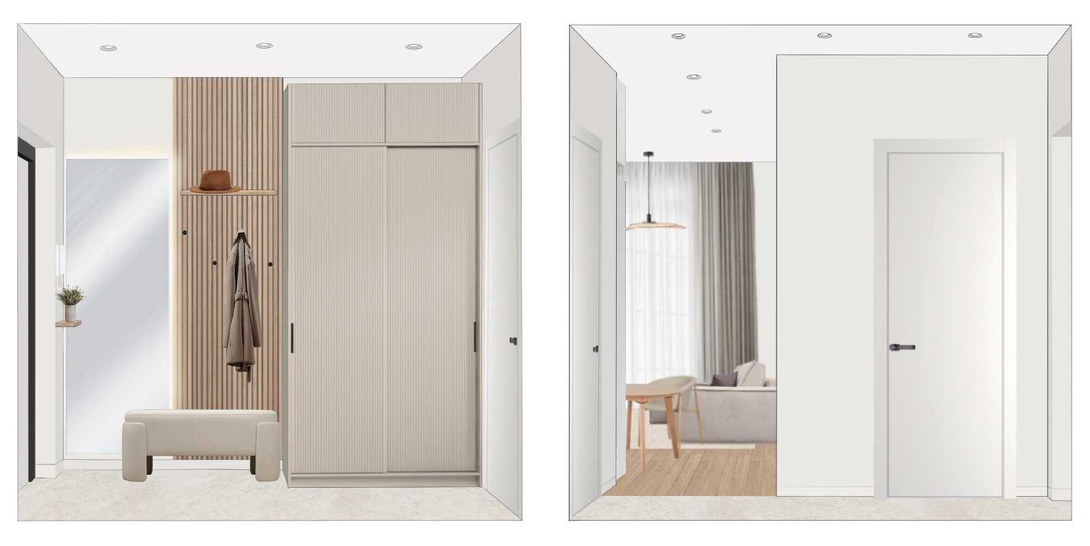 Пожелания заказчика — светлый интерьер в бюджетном сегменте с элементами рустик интерьеров, рейками и точечным освещением.